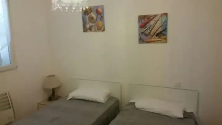 Magnifique logement climatisé en rez de jardin proposant 2 terrasses dont l'une face à la mer. L'accueil du logement est prévu pour 6 personnes. Les terrasses disposent de table et chaises également un jardinet avec barbecue pour les repas en famille et la seconde terrasse est équipée de salon de jardin pour les apéritifs face à la mer. Cet appartement dédié aux familles et au groupe d'amis propose un grand séjour et son espace repas pour 8 personnes. Cette pièce met à disposition une banquette lit confortable pour 2 personnes. Vous profiterez également d'une cuisine équipée avec lave vaisselle et linge ainsi que son espace repas & tv. Les 2 chambres sont l'une avec un lit double et la seconde avec 2 lits individuels pour une personne. La salle de bain très éclairée avec sa cabine douche, son lavabo et meuble de rangement ainsi qu'un wc.